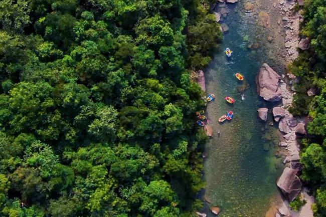武夷山國家公園青山蔥郁、秀水靈動 在這里,游客沿著蜿蜒溪流漫步,溪水潺潺淌過腳邊,送來沁骨涼意,頃刻間,暑氣盡消。 不遠處的山林間,不問山居靜臥于翠色之中。清冽的山風里藏著大紅袍獨特的巖骨花香,坐在茶室,窗外是蜿蜒流淌的清溪,耳畔縈繞著溪水潺潺的低語。陽光透過枝葉,灑下細碎的光斑。茶湯的醇厚巖韻與溪水的甘洌清透在此交融,氤氳出沁人的幽靜。 “這里的溪水比空調(diào)更懂清涼。”正在淺溪中悠然蹚水的上海游客張先生笑著說,“工作壓力大的時候,來這兒踩踩水、發(fā)發(fā)呆,什么煩惱都沒有了?!?/span> 轉(zhuǎn)過山坳,歡笑聲撲面而來。5歲的小游客樂樂舉著小網(wǎng)兜呼喊:“媽媽,快看,我抓到小魚啦!”這條沿著武夷山國家公園一號風景道流淌的碧綠綢帶成為了眾多游客市民親水露營的“寶藏地”。孩子們在淺灘追逐打鬧,水槍滋出的水花與笑聲一同飛濺;大人們或挽起褲腳踏入溪澗,任清涼漫過腳踝,或圍坐河畔小桌,就著果香與晚風閑談。