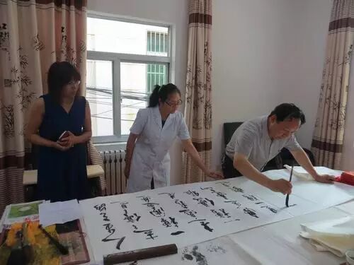 劉主任一行精心創(chuàng)作了20余幅贊揚(yáng)我中心養(yǎng)老事業(yè)發(fā)展和祝福老人生活幸福的書畫作品,用水墨丹青描繪出托養(yǎng)中心老年人的美好生活。