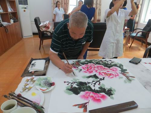 渭南市老齡委主任劉西民;渭南市美協(xié)、渭南市書法協(xié)會(huì)會(huì)員張占發(fā)老師、李志華老師首先了解了托養(yǎng)中心為老服務(wù)工作情況,對(duì)托養(yǎng)中心在社會(huì)養(yǎng)老服務(wù)行業(yè)中所起的作用給予高度肯定。把對(duì)托養(yǎng)中心美好未來(lái)的期盼與對(duì)老年人幸福生活的愿景傾注筆端,濃墨豪情頌盛世,丹青勵(lì)志謀發(fā)展。