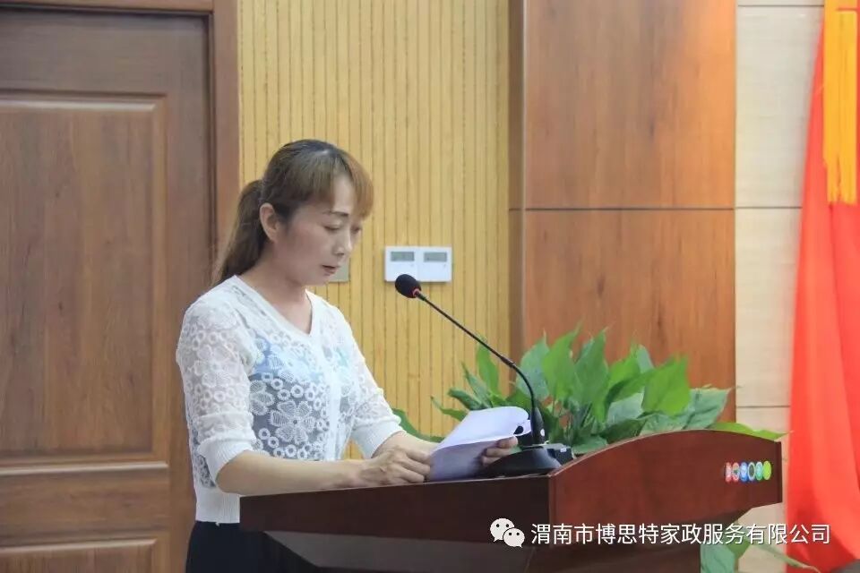 紅星村委會(huì)主任王存超做了重要講話,講話中王主任對(duì)紅星村現(xiàn)階段的發(fā)展做了分析總結(jié)并對(duì)紅星未來充滿信心,王主任鼓勵(lì)本期學(xué)員珍惜機(jī)會(huì),遵守培訓(xùn)秩序,認(rèn)真學(xué)習(xí),掌握家政服務(wù)技能,作為以后服務(wù)的典范。同時(shí)對(duì)博思特集團(tuán)免費(fèi)培訓(xùn)的社會(huì)責(zé)任心表示欽佩和感謝。 作為主要培訓(xùn)方渭南市博思特家政集團(tuán)副總經(jīng)理馮小艷代表董事長(zhǎng)李玲女士對(duì)本次培訓(xùn)作出了強(qiáng)調(diào),她說近年來從地方到國家,都很重視家政服務(wù)行業(yè),家政服務(wù)行業(yè)在我國是一個(gè)蓬勃發(fā)展的新型行業(yè),家政服務(wù)員更是推動(dòng)家政服務(wù)業(yè)規(guī)范發(fā)展不可缺少的一支重要隊(duì)伍,其個(gè)人素質(zhì)和業(yè)務(wù)技能直接影響到家政服務(wù)行業(yè)的長(zhǎng)遠(yuǎn)發(fā)展,同時(shí)也影響到其在廣大客戶心中的形象和需求,因此建設(shè)和培養(yǎng)一支專業(yè)素養(yǎng)高、業(yè)務(wù)技能好的家政服務(wù)員隊(duì)伍非常重要。因此,在培訓(xùn)過程中希望各位學(xué)員能夠解放思想、轉(zhuǎn)變觀念,珍惜機(jī)會(huì),認(rèn)真學(xué)習(xí),不辜負(fù)國家和政府對(duì)家政行業(yè)的厚愛和期望,不辜負(fù)紅星村委會(huì)對(duì)大家的關(guān)心和幫助!學(xué)員代表表態(tài)發(fā)言 開幕儀式在紅星村委會(huì)委員劉建軍輕松、愉悅、幽默的主持中進(jìn)行 劉建軍總結(jié)到:本次培訓(xùn)主要的目的是為大家打造一個(gè)現(xiàn)代家政的學(xué)習(xí)平臺(tái)和就業(yè)平臺(tái),努力建設(shè)一支獨(dú)立、自信、和諧且素質(zhì)優(yōu)良的家庭服務(wù)隊(duì)伍,為紅星村的安居樂業(yè)和經(jīng)濟(jì)發(fā)展作做出貢獻(xiàn)! 開班儀式結(jié)束后,劉平良校長(zhǎng)和本期學(xué)員進(jìn)行零距離溝通、了解。現(xiàn)在社會(huì),人們吃講營養(yǎng),穿講漂亮,住講寬敞,家庭中聘請(qǐng)家政服務(wù)員的目的是希望不斷提高家庭生活質(zhì)量,對(duì)家政服務(wù)員的期望和要求也很高。姐妹們只有努力學(xué)習(xí),變一下觀念,學(xué)一手本領(lǐng),真正掌握管理家政服務(wù)的知識(shí),學(xué)到為家庭生活服務(wù)的技能,就會(huì)多一些機(jī)會(huì),來適應(yīng)形勢(shì)的要求,在家政服務(wù)市場(chǎng)才具有競(jìng)爭(zhēng)力,并且對(duì)自己的生活也會(huì)有所幫助。 副總經(jīng)理馮小艷就現(xiàn)代家政服務(wù)發(fā)展現(xiàn)狀、前景和如何輕松做好家政服務(wù)工作以及家政給每個(gè)家庭帶來怎樣的益處展開首堂培訓(xùn)。 博思特集團(tuán)之所以能夠贏得各級(jí)領(lǐng)導(dǎo)的贊許和認(rèn)可,最主要的就是集團(tuán)能夠?qū)⑸鐣?huì)責(zé)任感放在首位,并且能夠在運(yùn)營上打破常規(guī),樹立其專業(yè)且有獨(dú)特的一條龍服務(wù)即技能培訓(xùn)、安置就業(yè)服務(wù)。整個(gè)運(yùn)作中,寓教于樂,按需培訓(xùn);技能精湛,定向安置;不破不立,打破常態(tài),及時(shí)有效地將現(xiàn)代社會(huì)需求理念的新鮮血液注入到新時(shí)代家政服務(wù)當(dāng)中去。在之后的培訓(xùn)中,博思特將以暫新的模式呈現(xiàn)給大家,本期主要模式有:“隨堂輔導(dǎo)式”“課堂游走式”“提問參與式”“小組PK式”“學(xué)員互動(dòng)式” “實(shí)際操練式”“模擬體驗(yàn)式”本次培訓(xùn)將為學(xué)員提供豐富又多趣味的專業(yè)教具本次培訓(xùn)寓教于樂,讓學(xué)員在輕松快樂的氛圍中完成學(xué)業(yè)。博思特家政服務(wù)第13期培訓(xùn)火熱報(bào)名中預(yù)報(bào)從速名額有限報(bào)名電話:0913-2186616報(bào)名地址:渭南市博思特家政服務(wù)有限公司(東風(fēng)街161號(hào))