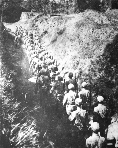 中國革命走向勝利的道路上, 是他們,沖破層層堵截; 在人民抵御外侮的抗戰(zhàn)中, 是他們,充當(dāng)著中流砥柱。