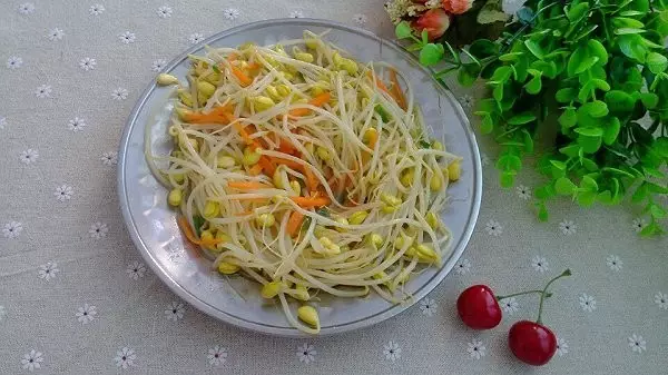 原料:黃豆芽40克,蔥花、姜絲、鹽各適量。